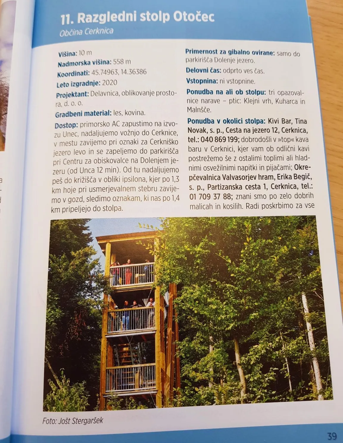 Pravkar je izšla knjiga Razgledni stolpi Slovenije, ki jo je sam, na svojo idejo, s svojim trudom, zbiranjem podatkov in fotografij ter trnovo potjo do končnega tiska in izida realiziral popotnik in pisec Brane Ternovšek. Kar tri strani so v knjigi namenjene našemu razglednemu stolpu Otočec in še trem našim opazovalnicam narave: Kuharci, Klejnemu vrhu in Malenščam.