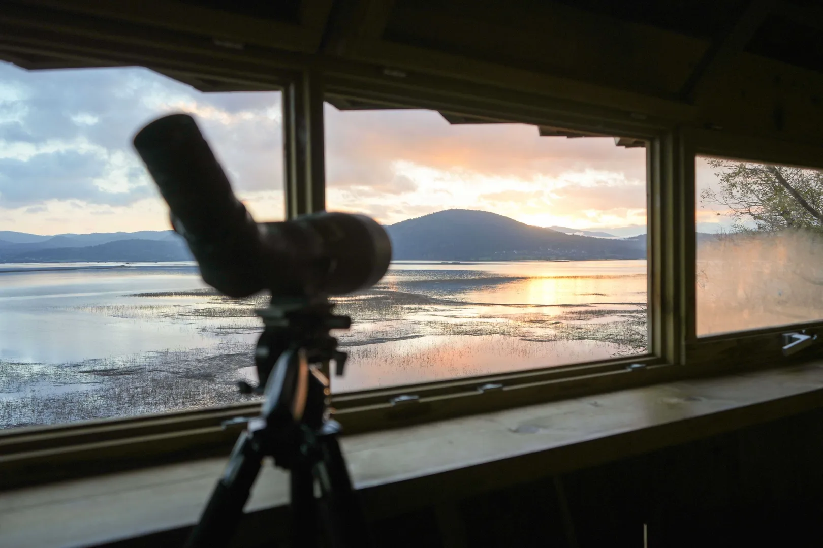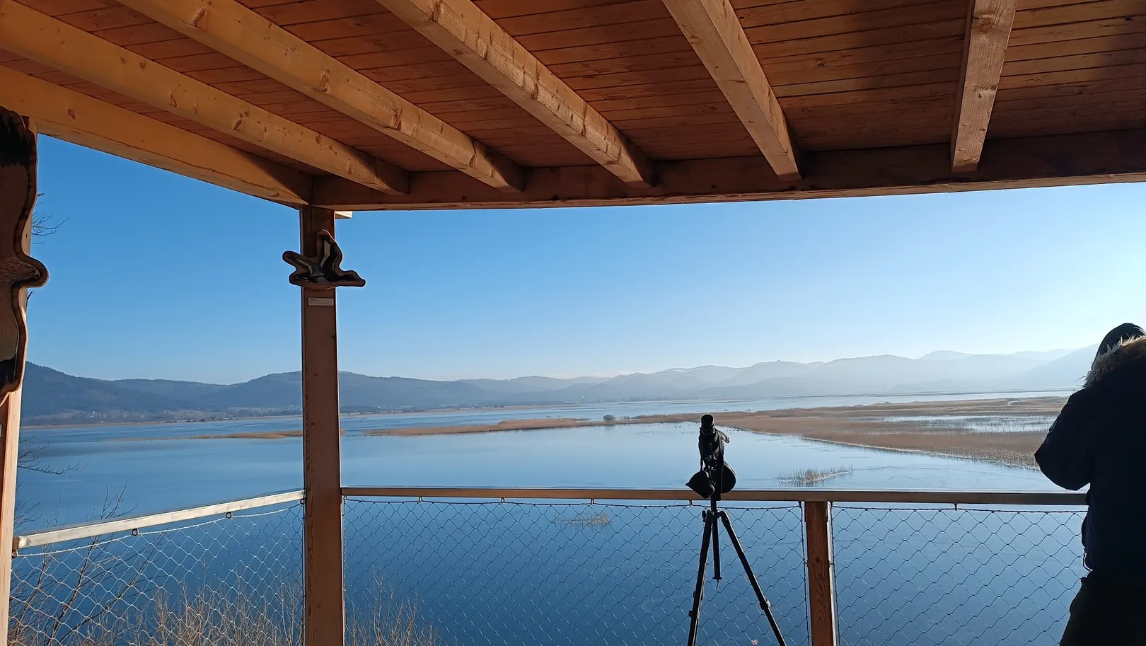 Cerkniško jezero je odlična vroča točka za opazovanje ptic v Sloveniji. Pogled na Cerkniško jezero z opazovalnice Orlek.