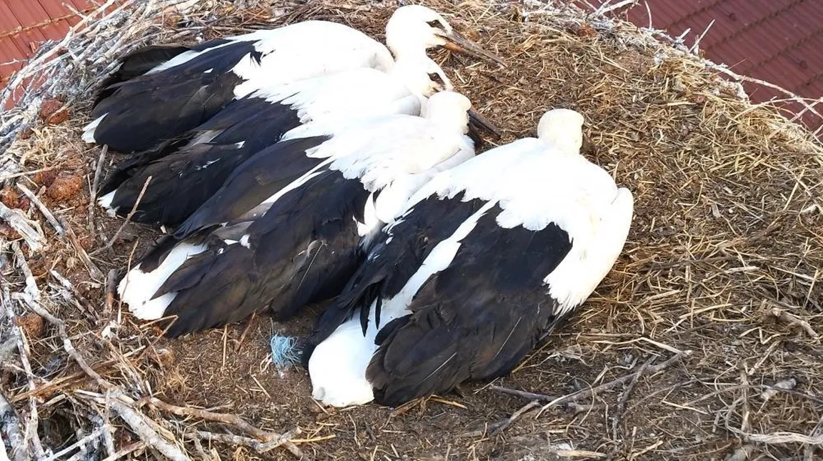 Naši kolegi z Društva za opazovanje in proučevanje ptic so obročkali vse štiri mladičke štorkelj, ki že več let zapored gnezdijo na drevesnem štrclju pri gasilskem domu v vasi Dolenje Jezero. Gre za enega od treh parov belih štorkelj, ki redno gnezdijo na območju Notranjskega parka (drugi dve gnezdi sta v Martinjaku in Gorenjem Jezeru).